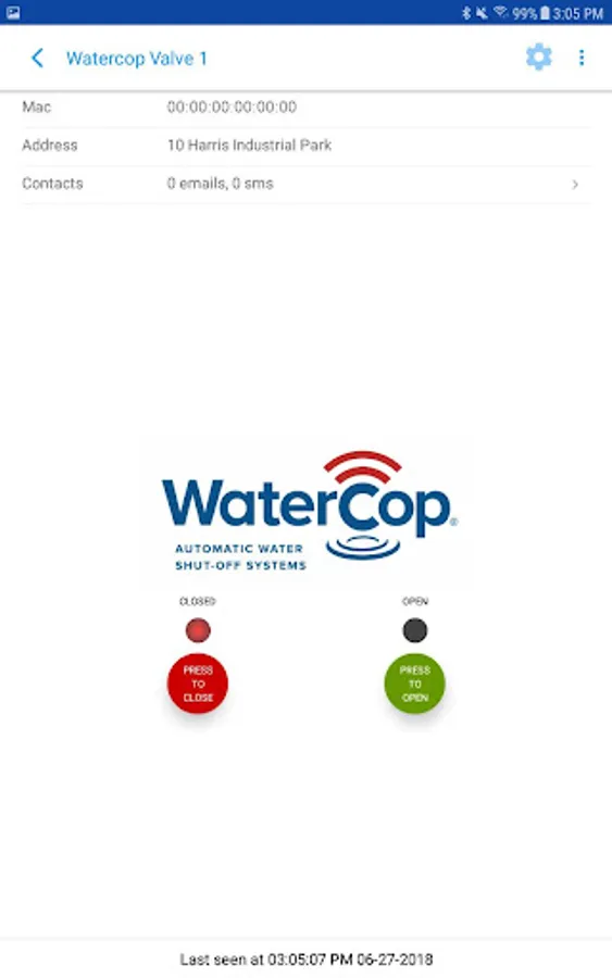 This app allows users to enjoy remote mobile access and control with their WaterCop Automatic Water Shut-Off Systems. Receive mobile alerts from the system via SMS text, email and push notifications of activity and events such as automatic closure and system power outages. All you need is an internet connection. The new WaterCop SmartConnect module offers both WiFi and Ethernet wired connectivity and will be available in September 2018.