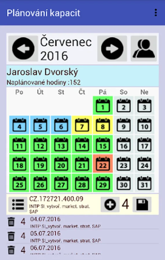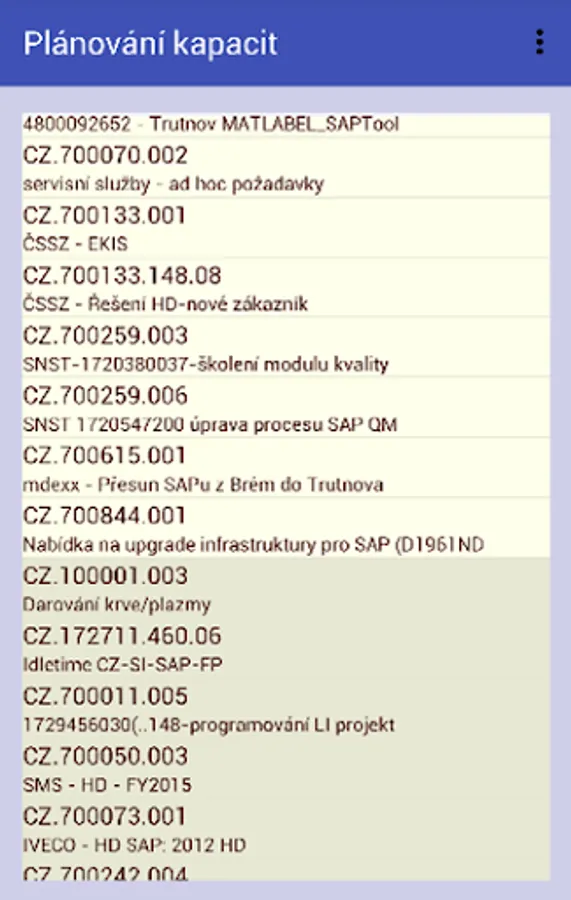 Android interface for system capacity planning. SAP backend data.