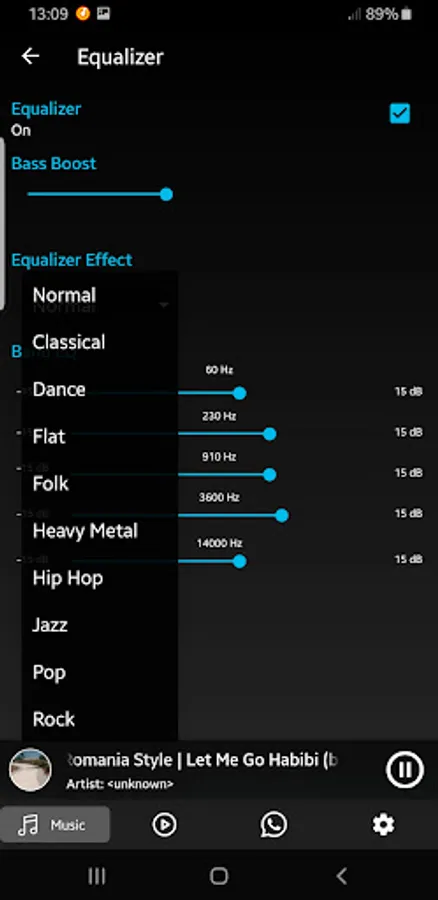 Manually bass boost, video player, adjust the equalizer and save your custom music playback style.