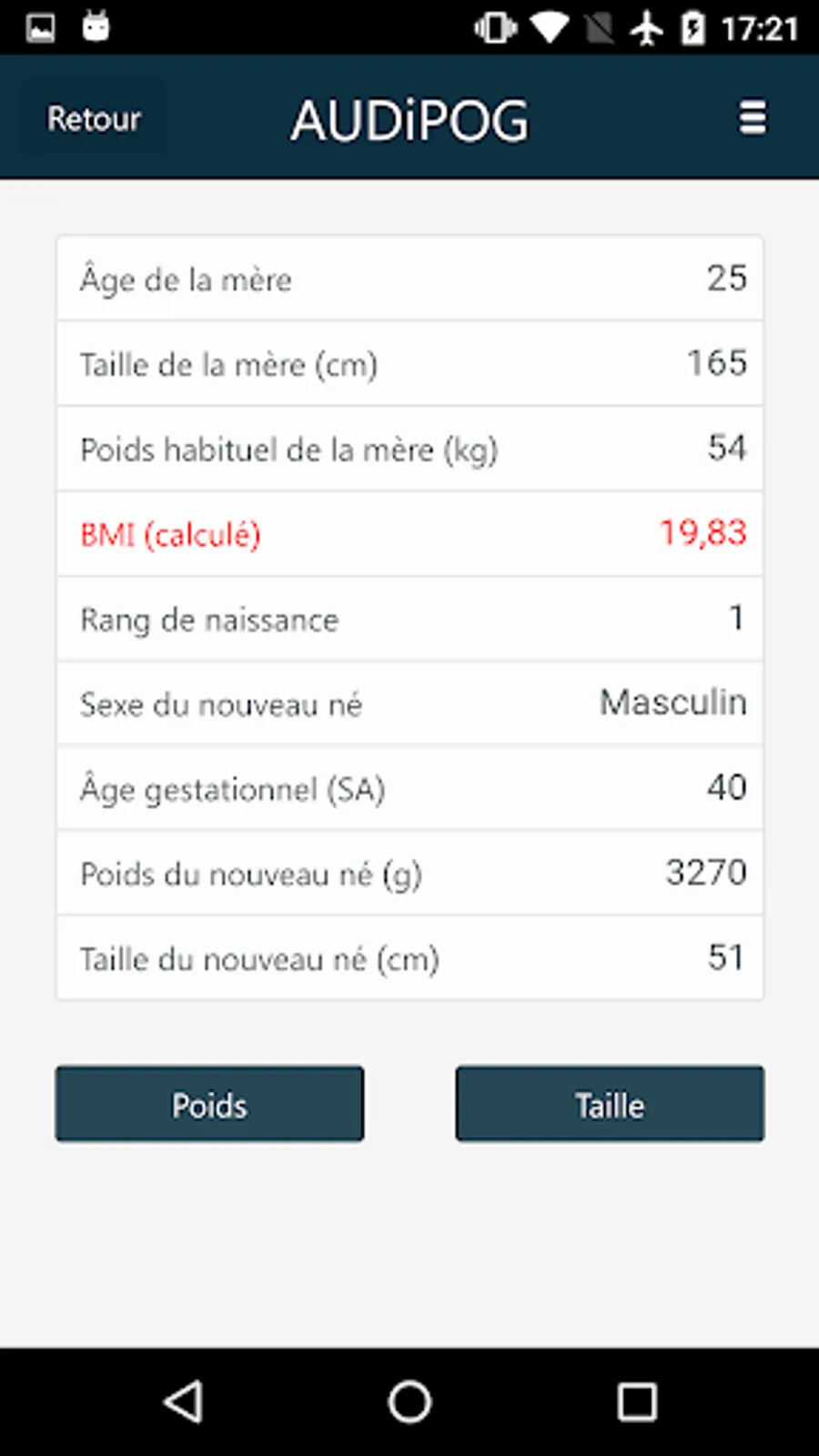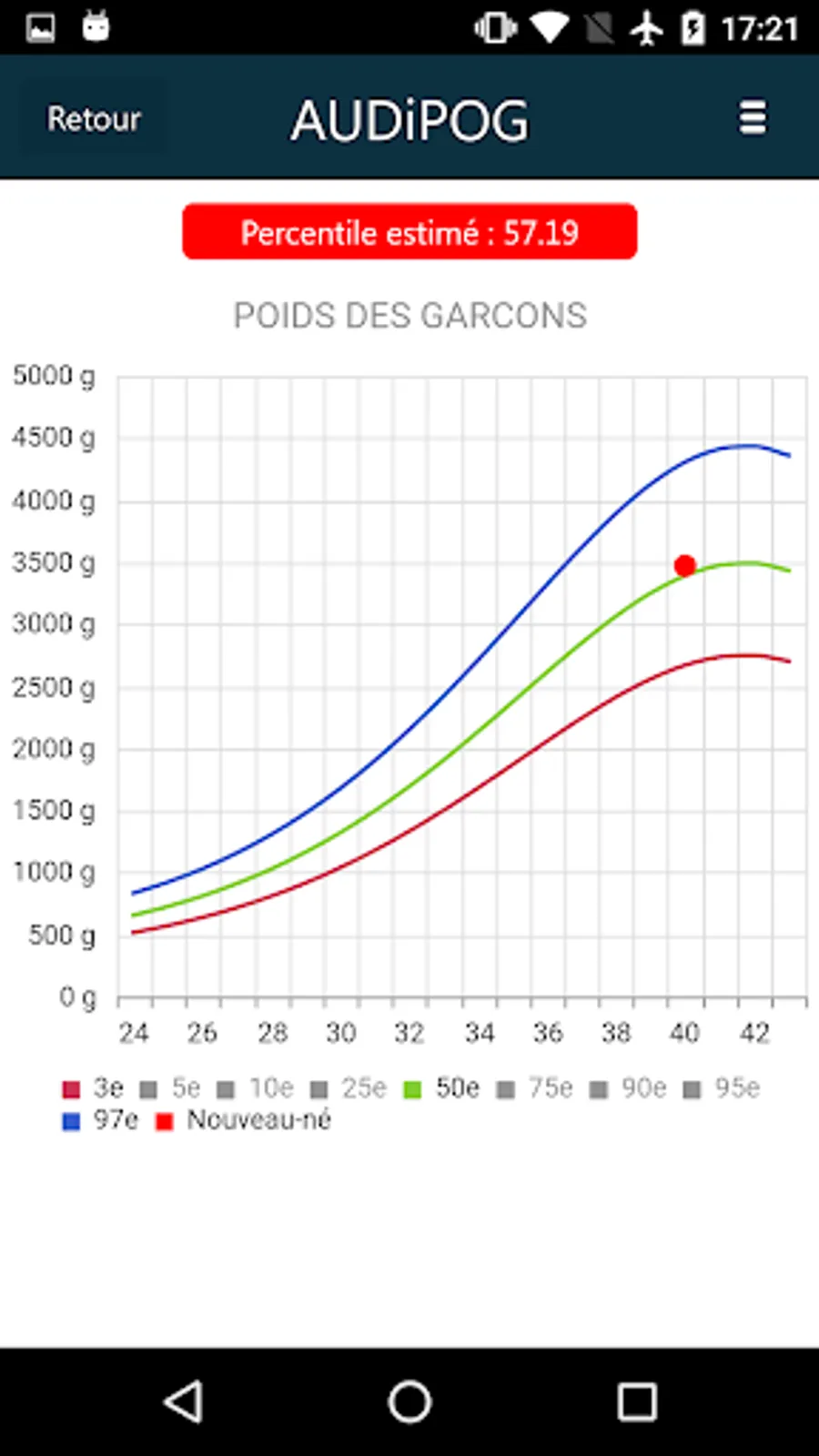 Percentile of the newborn is also calculated.