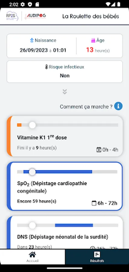 The tool allows the calculation of the age of the newborns in hours of life, planning of the screenings and the exits of maternities "low risk".