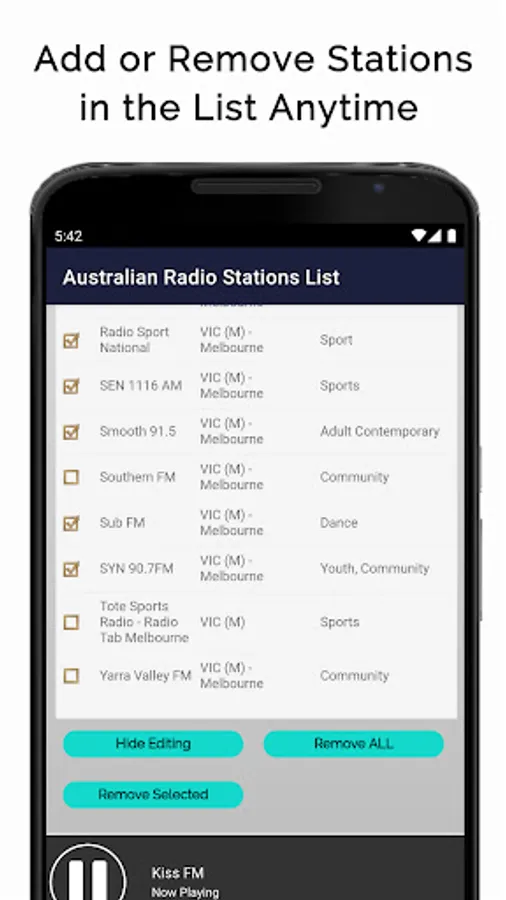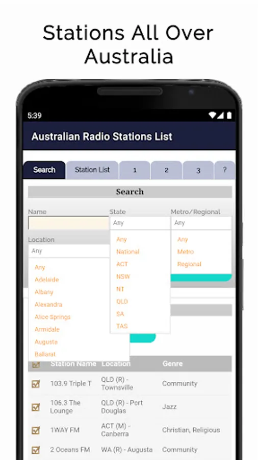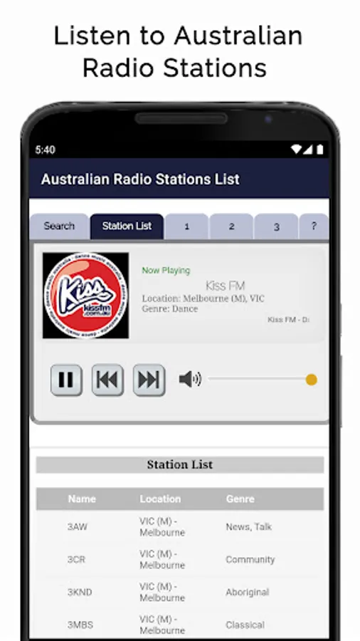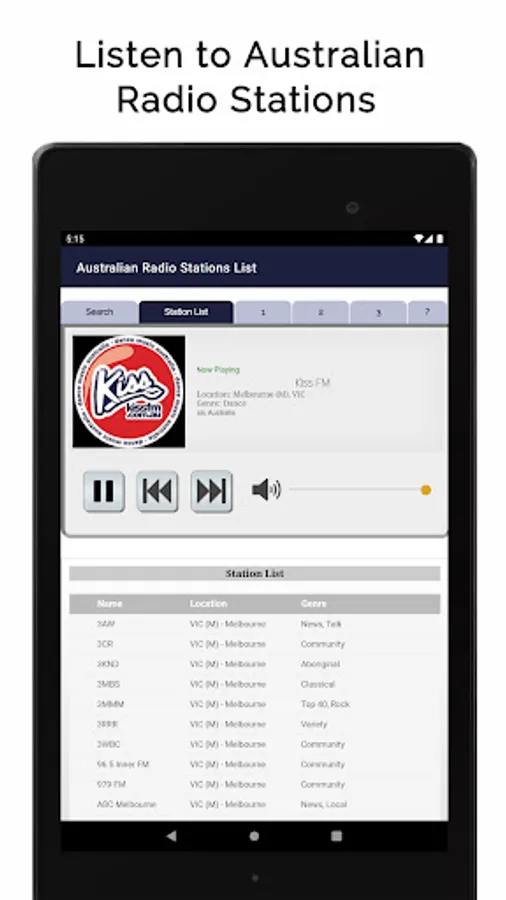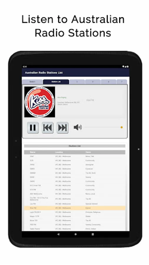 Australian Radio Stations List is a free app that allows you to listen to live radio from Australia. Create a list of your favourite Australian radio stations from 200+ available stations. All genre. News radio, talk radio, rock, pop, dance, rnb, country, multicultural, easy listening, religious, adult contemporary and more. State, commercial and community radio. Stations all over Australia. Sydney radio stations, Melbourne radio stations, Brisbane radio stations and other state capitals. Regional radio stations including Albany, Alice Springs, Bendigo, Bundaberg, Mandurah, Mount Gambier, Newcastle, Nimbin, Seymour, Toowoomba, Townsville and others.