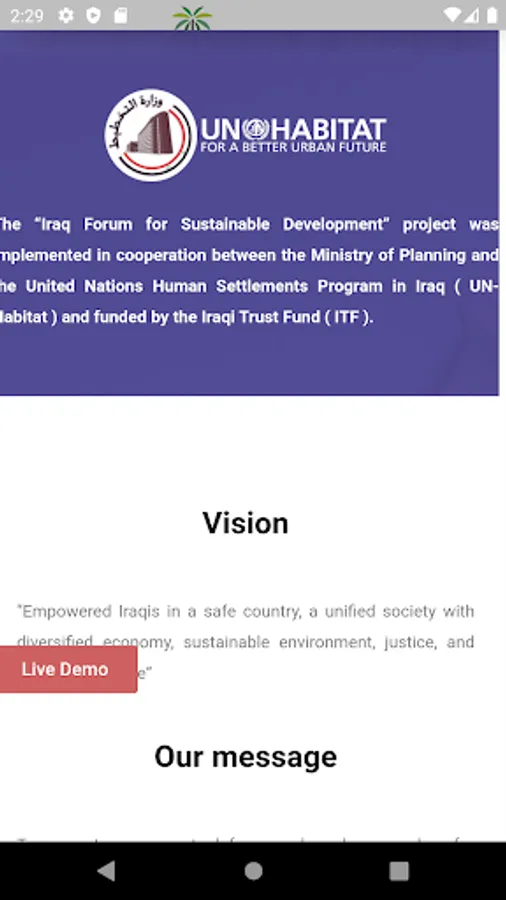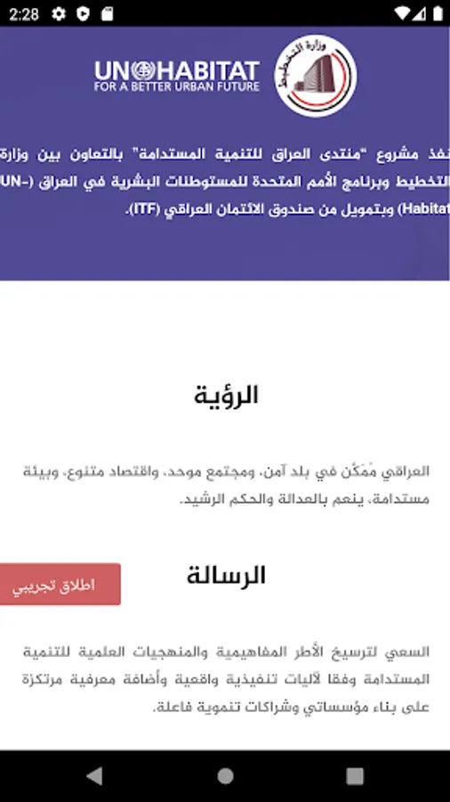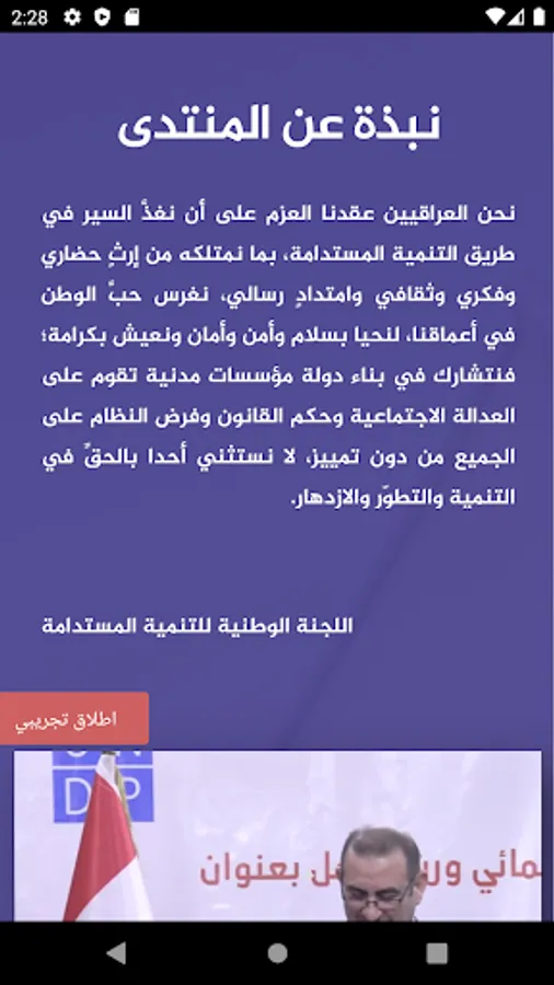 The Iraqi people are determined to advance in the sustainable development road assisted by our cultural and intellectual heritage and mission. We instill the love of our homeland in our hearts to live in peace, security, safety, and dignity. We join forces to build our country and civil institutions based on social justice, rule of law, and law enforcement without discrimination. All people have the right to development and prosperity.