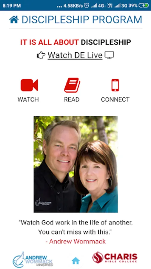 This is a 48 lesson D E course of Andrew Wommack and Don Krow. Enjoy the 10 minute teaching Videos in many languages. The pdf file of DE in various languages can be downloaded from this app.