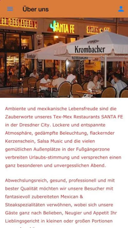 Mexican ambiance and joie de vivre are the magic words of our Tex-Mex Restaurants SANTA FE in the Dresden City. Casual and relaxed atmosphere, dim lighting, flickering candlelight, Salsa Music and the many cozy outdoor seating in the pedestrian zone spread cheerful holiday mood and promise an unforgettable evening.