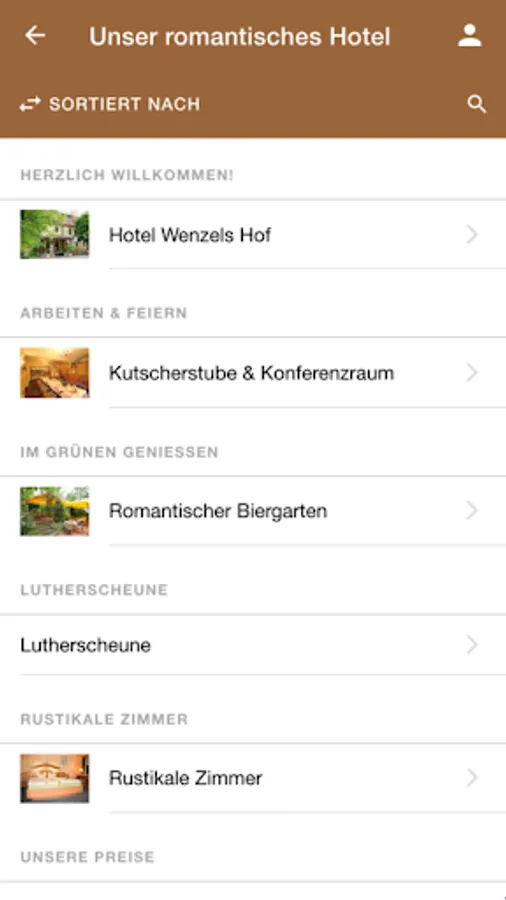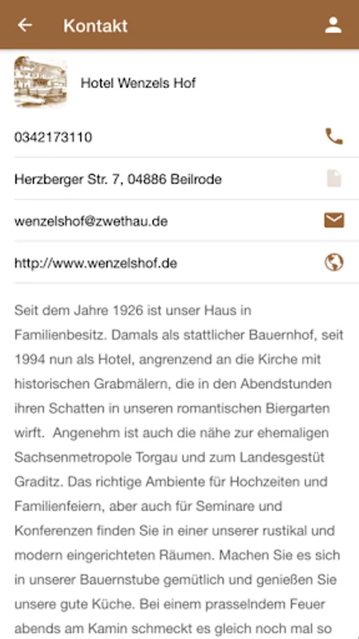 The following functions are: Description of hotel amenities with rooms, restaurant, Luther Barn, Kutscherstube and conference room.