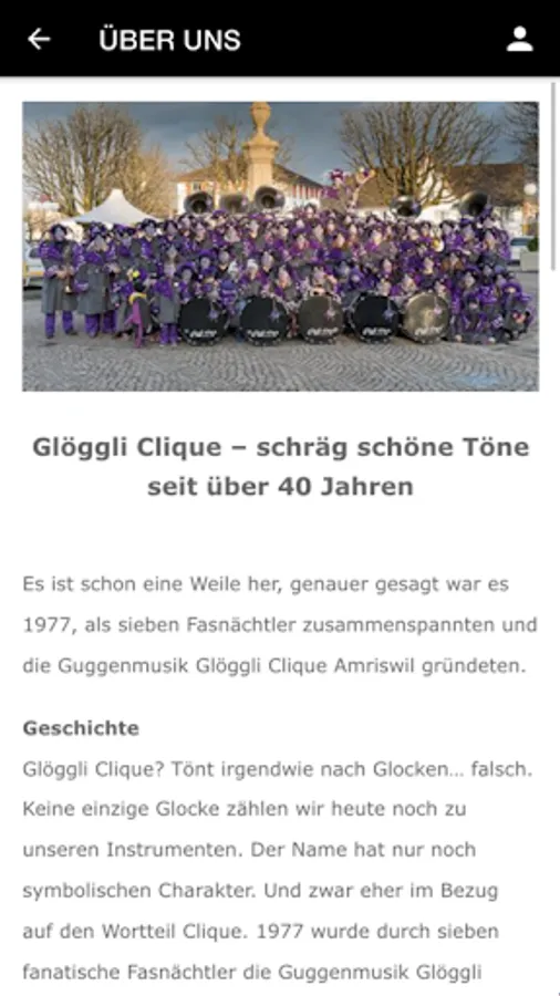 The name has only symbolic. And more in relation to the part of word clique. 1977 was founded by seven fanatical revelers the Guggenmusik Glöggli clique Amriswil. Early 90s at the time still rather small Guggenmusik grew into an ever larger formation. Today, we have over 55 members 16-55 years in our ranks and are part of the eastern Swiss Fasnacht. Ambitious track the Glögglis the ongoing maintenance and optimization of their musicianship and stage presence.
