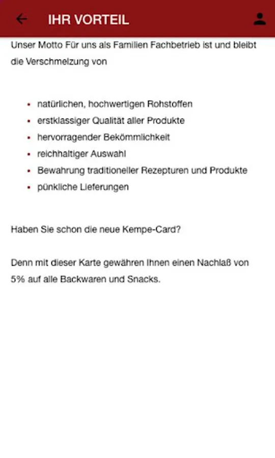 With the app, the bakery Kempe from Wilhelmshaven you are well informed. You get an insight into our services and latest offers.