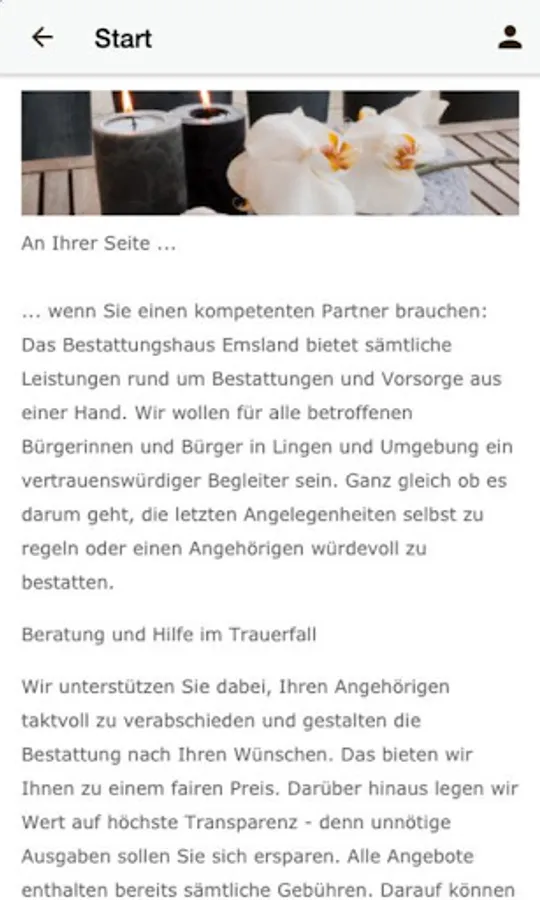 The funeral home Emsland offers all services related to funerals and prevention from a single source. We want to be for all concerned citizens in Lingen and around a trustworthy companion. Whether it comes to control the final affairs or to bury a loved one with dignity. Now as official app!