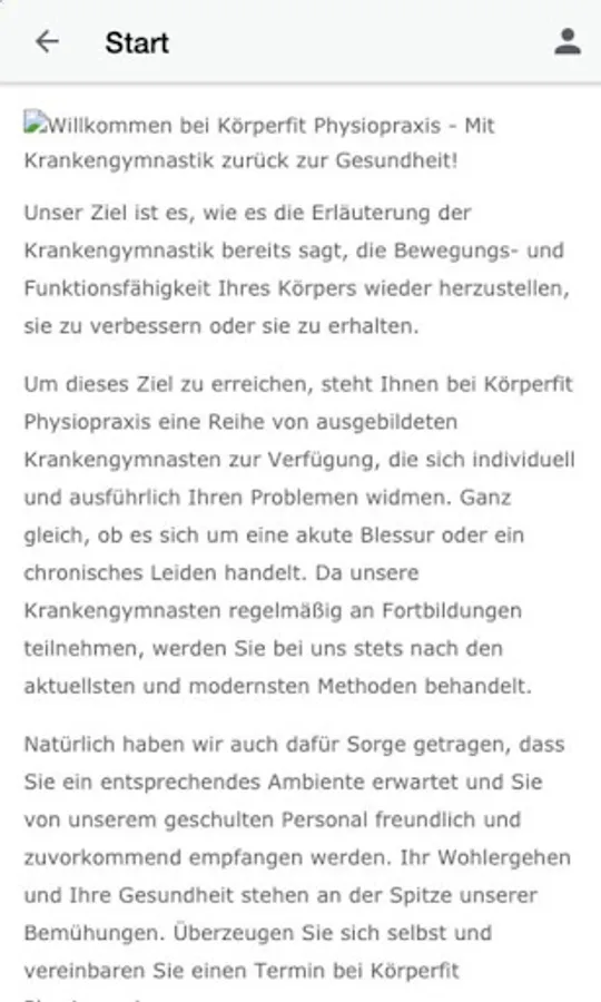 Welcome to Körperfit Physiopraxis - With physiotherapy back to health! Our goal is, as already said, the explanation of physiotherapy, the motion and functional ability of your body to restore to improve them or get them. To achieve this goal, is available at Körperfit Physiopraxis a number of trained physiotherapists are available which are dedicated to individual and detailed your problems. Now as official app!