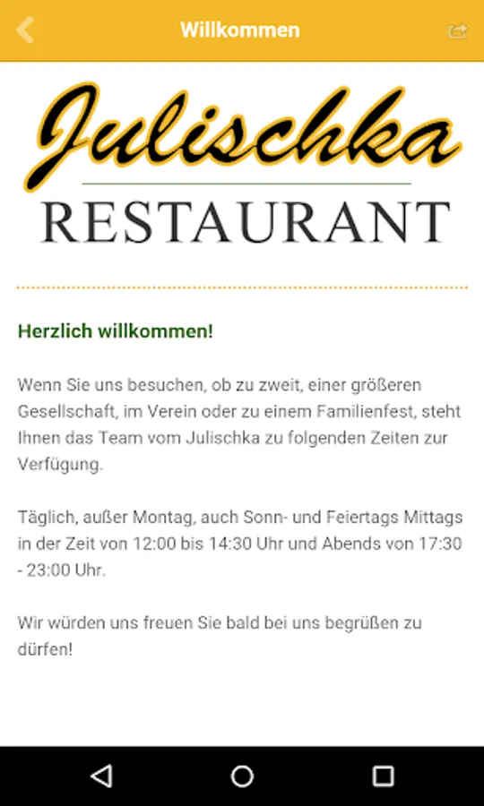 With the app from the restaurant Julischka in Wilhelmshaven be informed, and get an overview of our extensive range of foods and impressions of the restaurant. We would like to get acquainted with the specialties of Bosnia and hope that you take a whiff of the well-known and respected hospitality home.