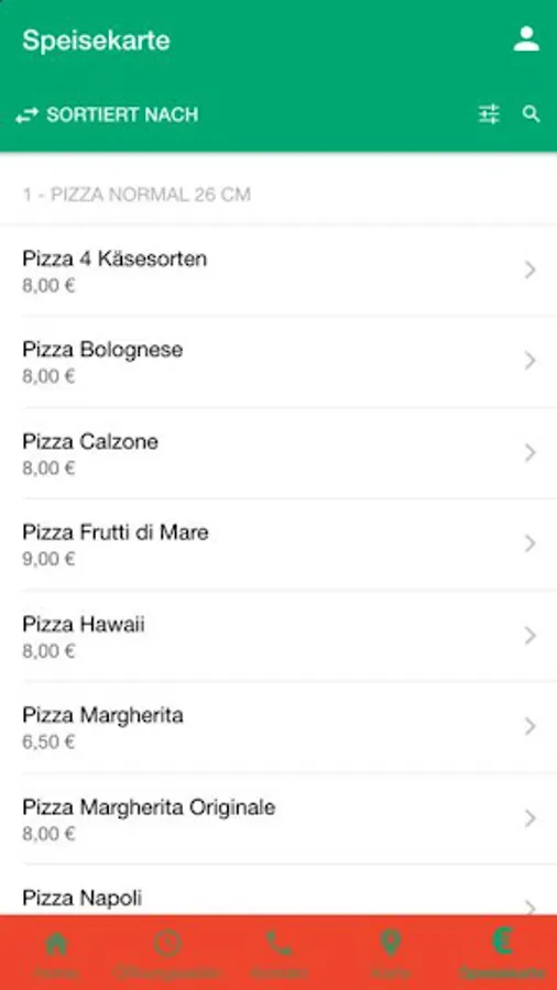 from 7.50 euros. For collection each pizza according to the map ø 26 cm only 5,50 €.