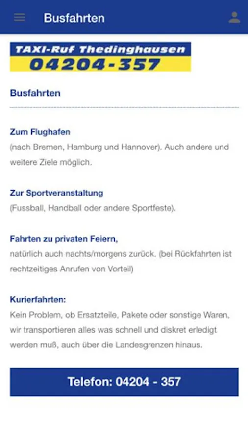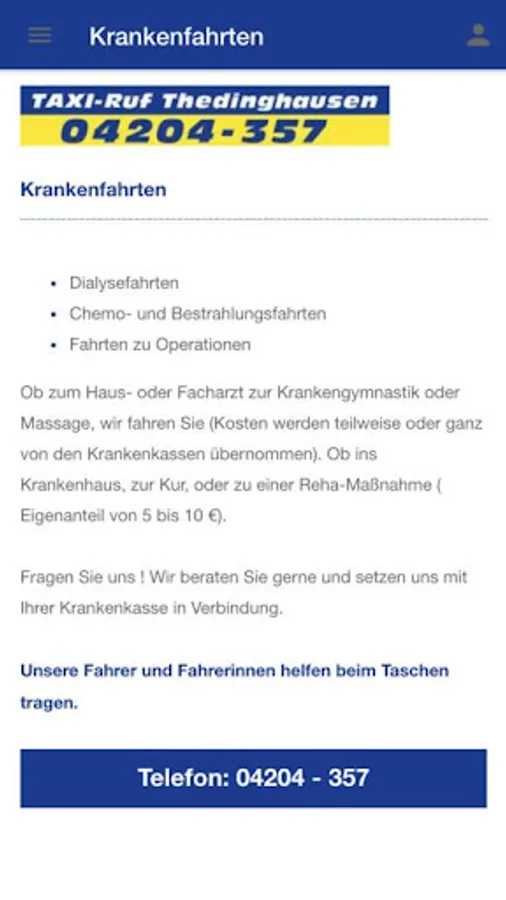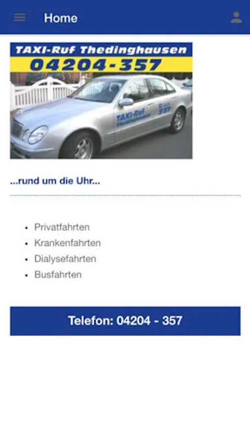 Welcome to Taxi-Ruf Thedinghausen. Whether private trips, ambulance runs or bus trips - we will bring you safely to your destination. Find out more about us and our offer - now through the official app!