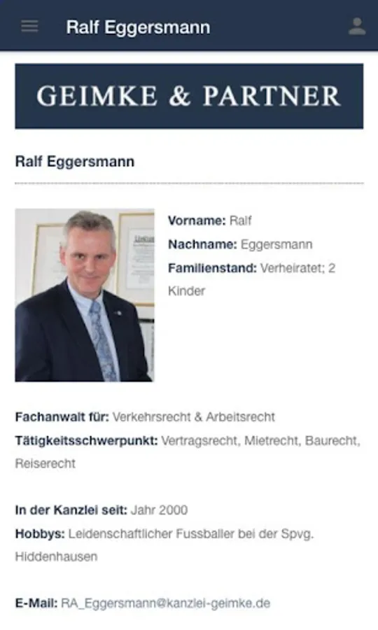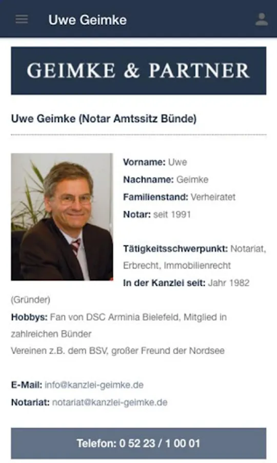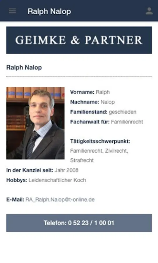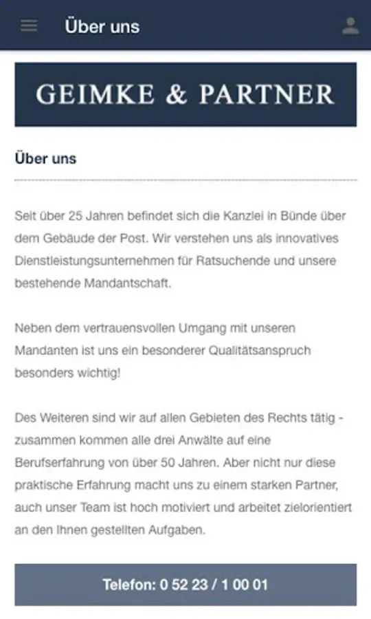 Welcome to the law firm Uwe Geimke, Ralph Nalop and Ralf Eggersmann. With our app you can get detailed information about the firm, the lawyers and our services.