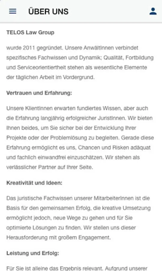 The app of TELOS Law Group allows you, among other things, and quickly make appointments, give feedback and to gain an impression of our firm. For those interested, a newsfeed with recent developments is contained in the legal field.