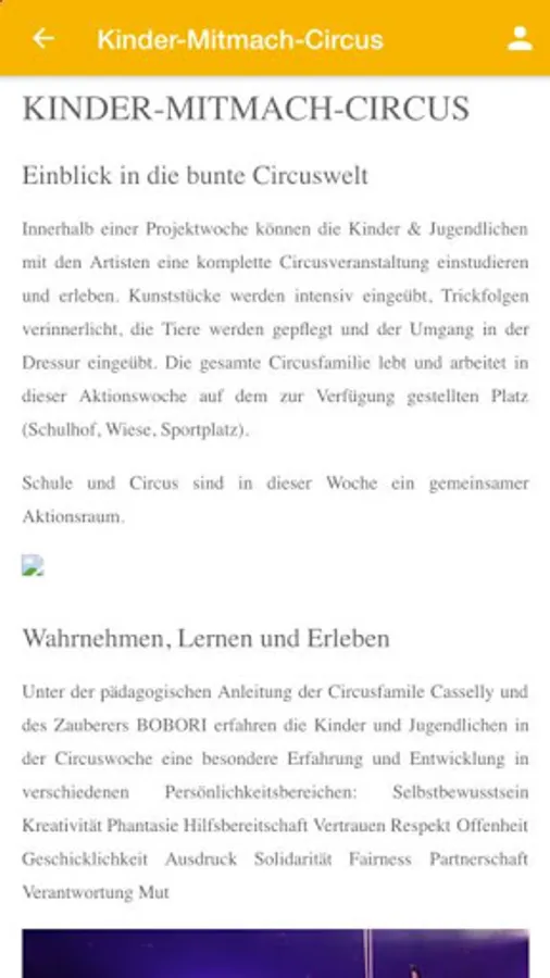 Under the guidance of educational Circus family Casselly and the Sorcerer BOBORI the minors experienced in Circus week a special experience and development in different areas of personality: self-confidence | Creativity | Fantasy | Helpfulness | Trust | Respect | Openness | Skill | Expression | Solidarity | Fairness | Partnership | Responsibility | Courage