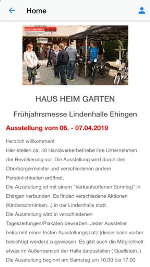 With our Fair app gives you access to all exhibitors of home-home-garden in Ehingen. So are the lists of exhibitors including map, and exhibition programs are in advance of your visit available. Dynamic messages, pictures and video to the current event can bring up to date. With our current fair discounts You can save money and the mono- or grab some bargains.