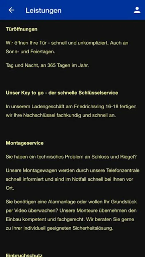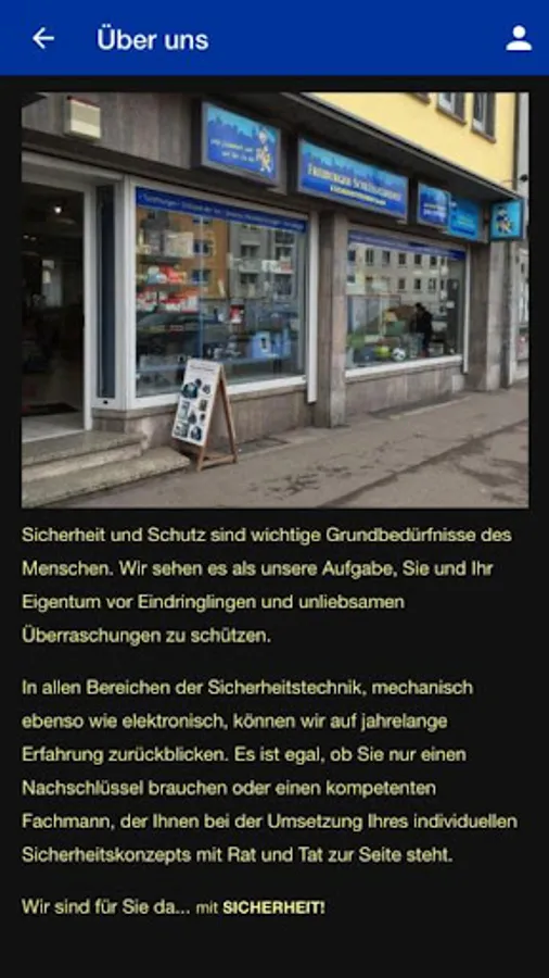 Security and protection are important basic human needs. We see it as our job to protect you and your property from intruders and unwelcome surprises. In all areas of safety technology, mechanically as well as electronically, we can look back on years of experience. It does not matter if you only need a duplicate or a competent professional who will assist you in implementing your individual safety concept in word and deed. We are there for you ... with SECURITY! You will find us in the center of Freiburg, opposite the victory monument. We are looking forward to your visit!