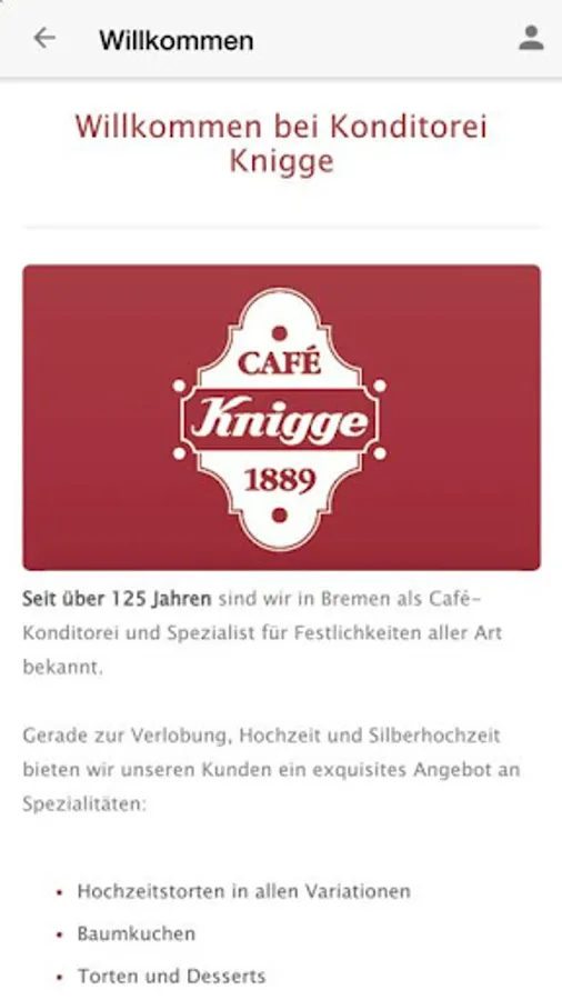 Welcome to the official app of Konditorei Knigge Emil Knigge OHG in Bremen!