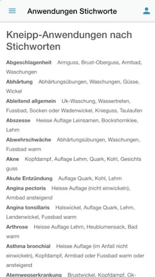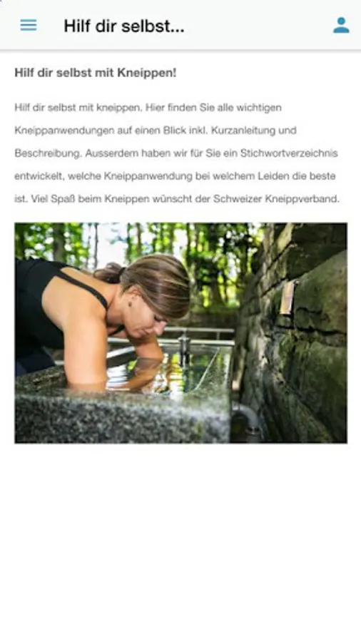 In our Kneipp app can help you with Kneipp themselves. Various applications, winding, fonts, dressings and compresses can be applied in various diseases or for prevention. With the help of descriptions and images, you can easily perform the applications from home. A general index helps you at a glance which Kneipp application can in which diseases and problems help.