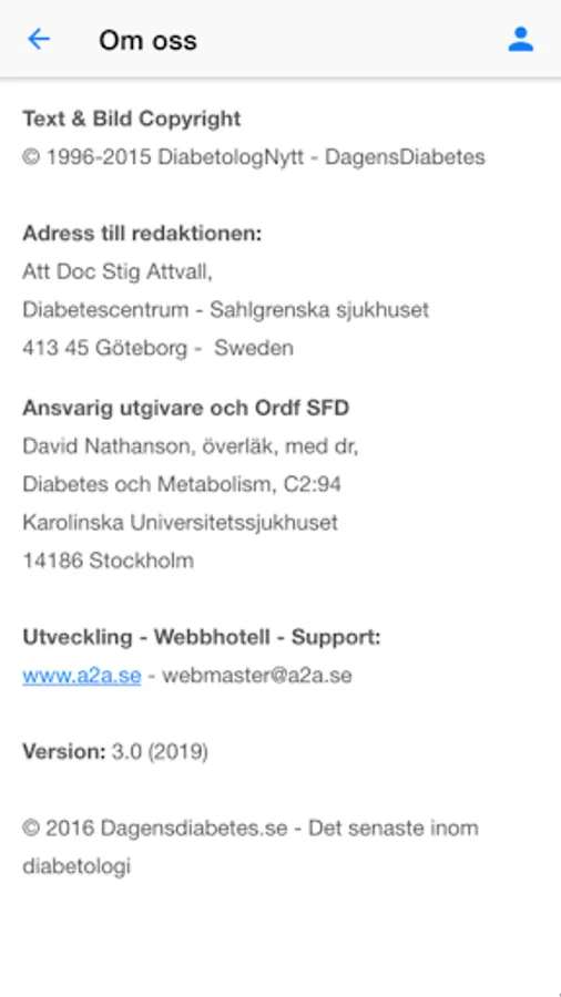 Information om diabetes sjukdom för diabetologer och personal inom relaterade sjukdomar. Uppdateras kontinuerlig. App är framtagen av Sensk Förening för Diabetologi i Sverige som ett verktyg för att sprida information och kunskap om Diabetes sjukdom. Verktygen sam Webbplatsen är avsedda främst för yrkesverksamma inom diabetes relaterade verksamheter.