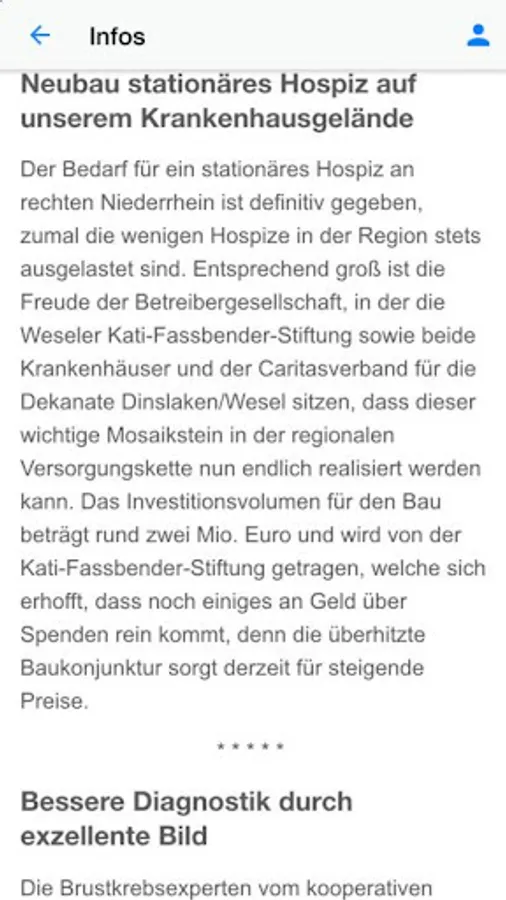 The mum-app provides various services to inform visitors and patients quickly and compactly on interesting facts from the Protestant Hospital Wesel. Contacts, news, photos, events, prices and menus are stored and can be retrieved to date. An added value for all patients, friends and supporters of the health facility.