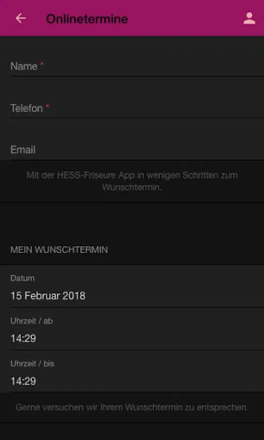 The team of hairdressers HESS is innovative, dynamic and always strives to provide the latest information on the subject of Hair Style, unique color creations, custom haircuts, beautiful hair and beauty and cosmetics customers. In this app there are just that possibility. Great hairstyles and trends, their own creations, information and news about our salon, our services and employees, online appointment, own events and events, contact information directly in the salon, hairstyle suggestions in a gallery - directly by the needs of different types. Exclusive in this app there are bonus and loyalty programs. There is also the opportunity for feedback from Salon Visit us know your opinion and suggestions is to übermitteln.Spannend and exciting for everyone who understands the importance of our external appearance of success and quality of life. All this presents a fantastic team that his, now uses more than 100 years of tradition to sustainably among the best of any industry. In this app the user insight into the fantastic Alltag-, the successes and also challenge gets when it comes to hair and career in hairdressing.
