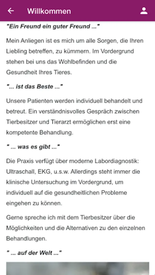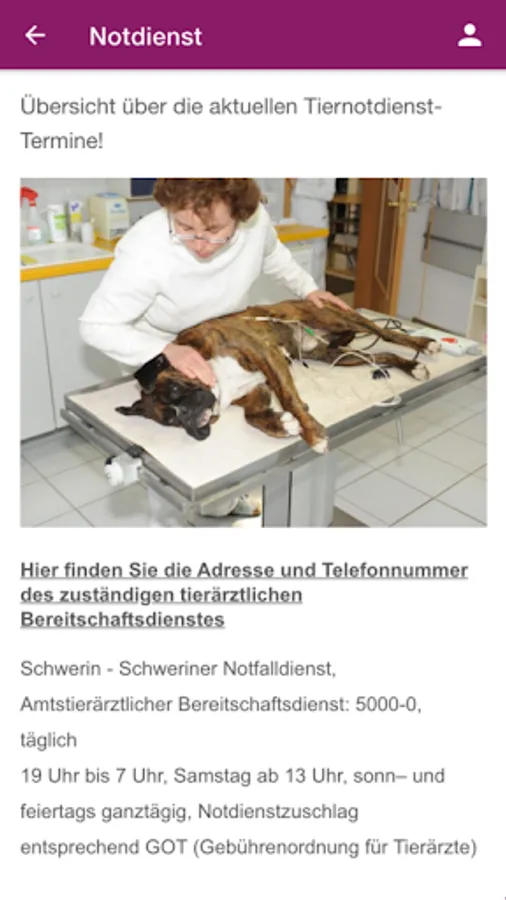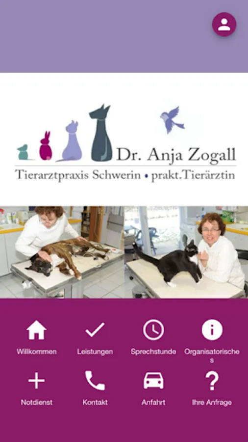 Welcome to the offcial app veterinary practice Dr. Schwerin Anja Zogall! Learn all about our services and contact details.