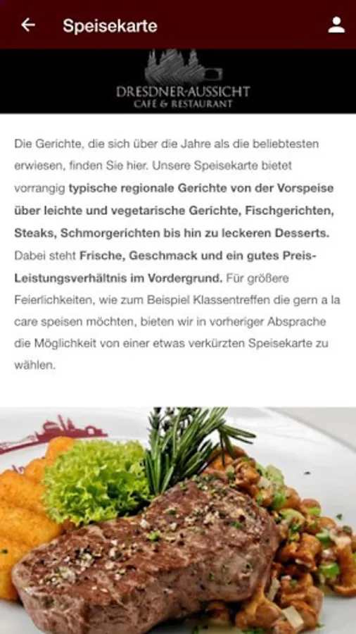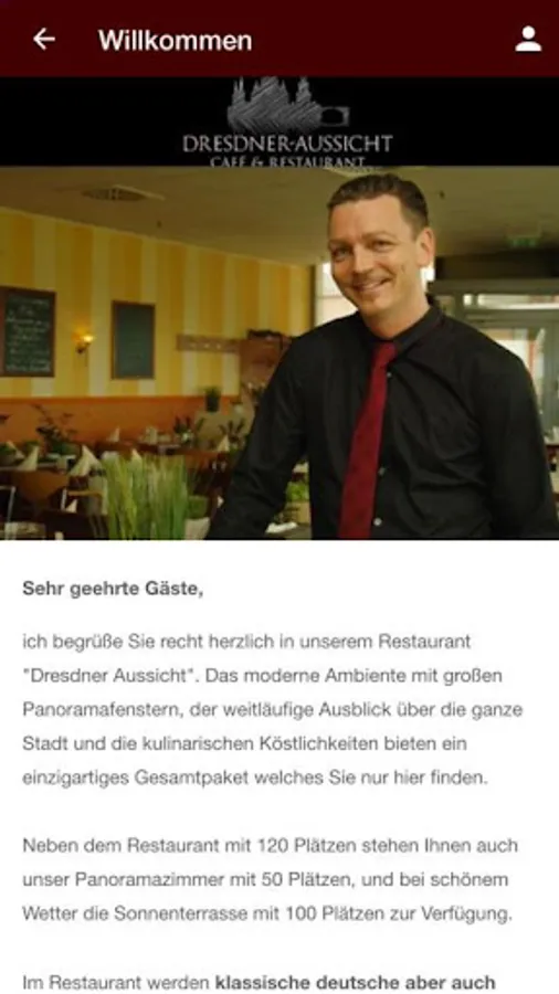 Dear guests, we welcome you to our restaurant "Dresdner view". Let yourself be spoiled by our kitchen, while you enjoy one of the best views of the city of Dresden.