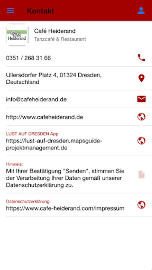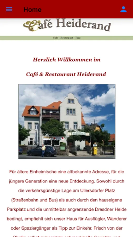 For older locals a well-known address for the younger generation a new discovery. Both through the conveniently located at Ullersdorfer Course (tram and bus) as well as by the private car parking and immediately adjacent Dresdner Heide due to our house for hikers, walkers or strollers recommended as a tip to stop. Freshly prepared by the owner himself tasty dishes and homemade specialties, coffee and cakes await the guest. The family atmosphere at Walther family and the friendly service in a pleasant, friendly atmosphere guarantee a stay to feel good. The spacious restaurant, with but also separable premises are also a popular venue for families, anniversaries, club or company celebrations. Specially created buffets and particularly arranged sequences can be hard for us at any celebration. Our historic house, the restored restaurant and contemporary gastronomy we feel but also committed to the tradition of tea dances and dance evenings. The mix of dining restaurant, cafe and regularly held dances and dance classes in classical style studied in Dresden his peers and provides the special atmosphere of the Café Heiderand dar.