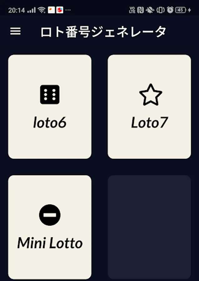 Numbers for Lotto 6, Lotto 7, Mini Lotto, Numbers 3, and Numbers 4 are automatically generated. (* Not a winning number prediction app)