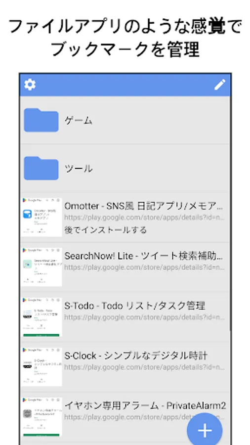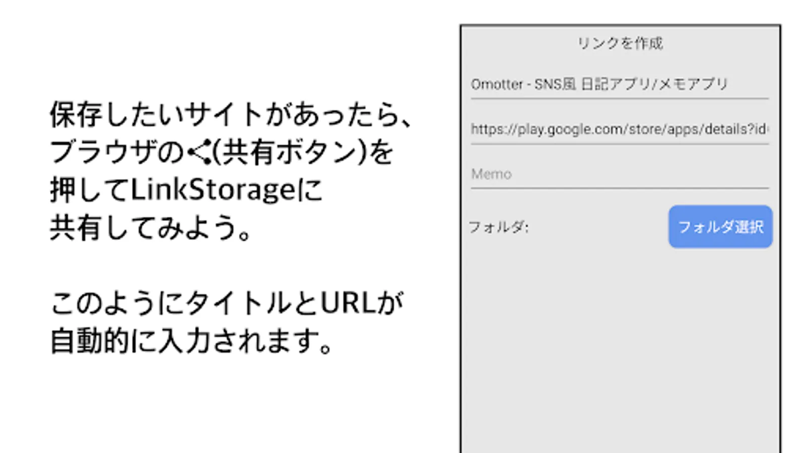 LinkStorage allows you to categorize links in folders. By grouping and organizing links by genre, you can access the desired site without getting lost.