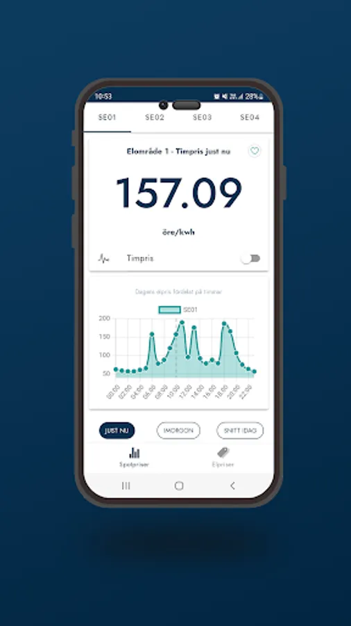 In the app you will find spot prices for all electricity areas and regardless of where in the country you live. The app is suitable for those who want to keep an eye on the current electricity price when you e.g. heats the house or water, charges the electric car or produces electricity via e.g. solar cells or wind power.