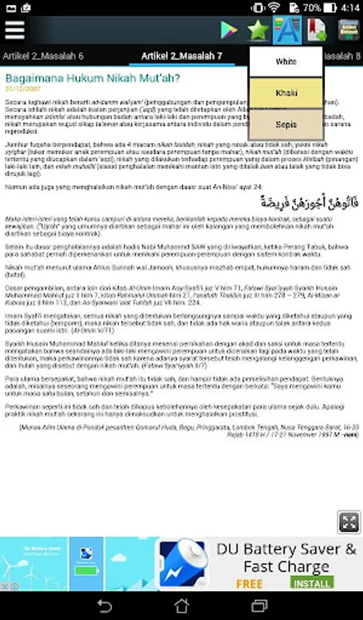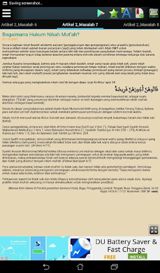 This NU Dinniyah Article Collection Application Contains various kinds of Articles Collection peeled according to Aqidah As Sunnah Wal Jamaah from NU