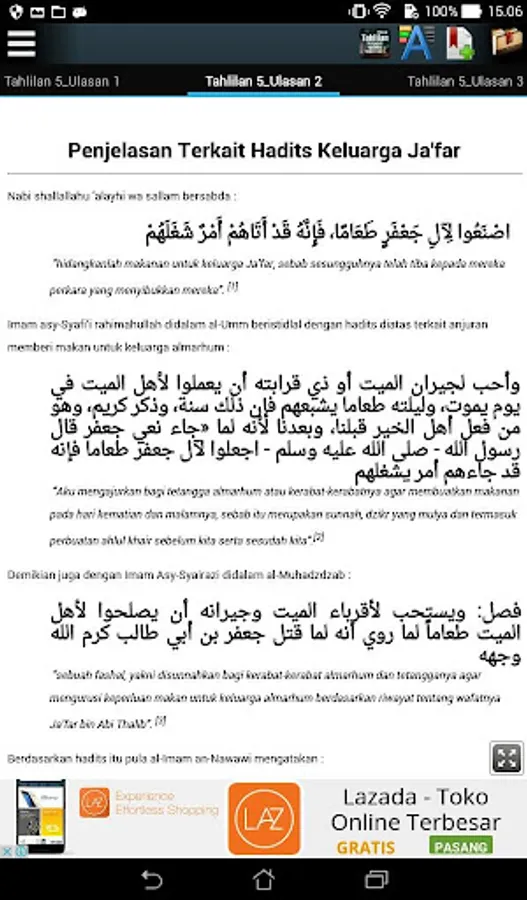 This activity is not of the required activities. people should do it or not. tahlilan not the obligation, and is a lie and fetched if tahlilan is calculated as a pillar. tahlilan is a free choice for individuals and families associated with the desire to pray for their parents or not. tahlilan also not an activity that should be done gathered-together at the funeral home and therefore the alleged burden the host. tahlilan deceased and pray that it can be done individually or in congregation, in the same place or everywhere. alleges tahlil as innovation is making it up and against the belief that the child devout Muslims who pray for the parents is the ideal of every person.