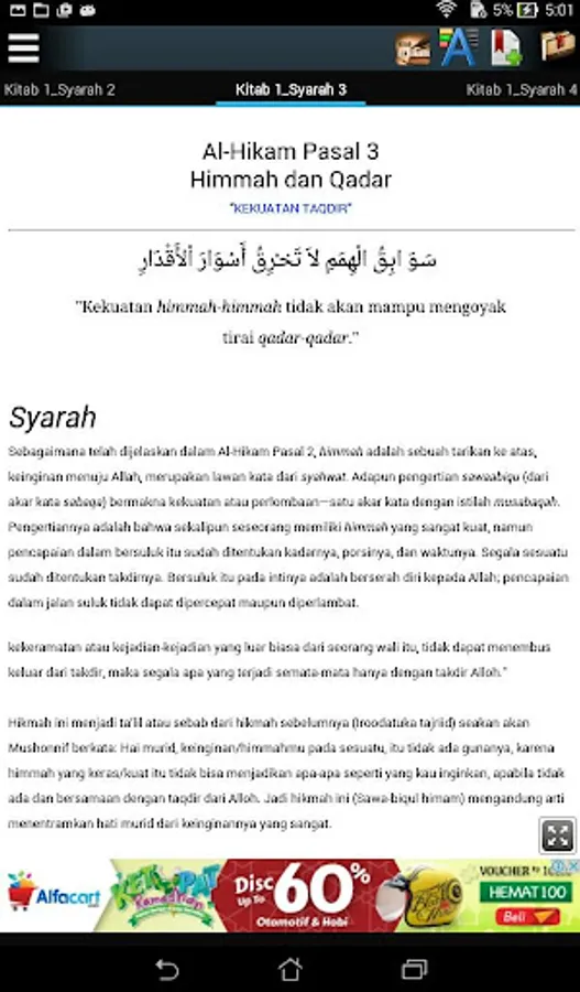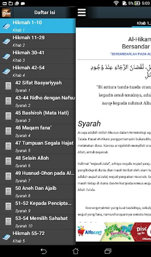 The Al-Hikam Book is the main work of Ibn 'Atha'illah, which is very popular, which contains words of wisdom which are of very high value, containing the understanding of monotheism, morals, and ma'rifatullah, Shaykh Ibn' Atha'illah as-Sakandari ( 1309 CE) lived in Egypt during the Mamluk dynasty. He was born in the city of Alexandria (Alexandria), then moved to Cairo. In this city he spent his life teaching the Imam Maliki school of law at various intellectual institutions, including the Al-Azhar Mosque. At the same time he was also widely known in the field of Sufism as a third "master" (shaykh) in the Sufi Syadziliyah order.