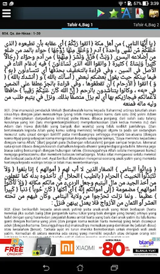 Free application Tafsir Jalalain 30 juzz Al Quran Complete with Explanation Syarah. Jalalain Interpretation is one of the Qur'anic interpretation books that are familiar in the knowledge literature in understanding the Qur'an, Many Islamic Boarding Schools Require their students to use Jalalain 30 Juzz's Interpretation Book, a style that is easy to understand and the literature is in accordance with the Santri language.