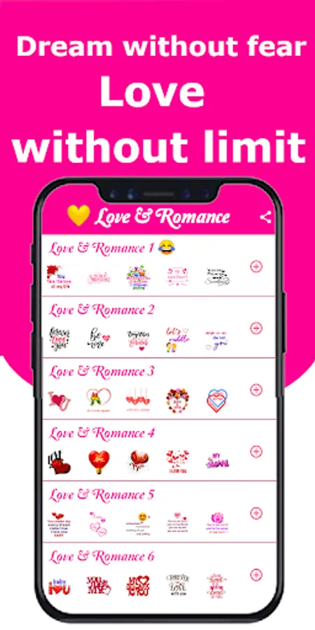 The Love and Romance stickers app contains a large collection of beautiful and varied stickers for WhatsApp to express your love for your family, friends and loved ones that were chosen and carefully selected to suit your taste and impress your lover, and they were classified into sections so that it is easy for you to choose what suits you from the stickers and what you see suitable for your lover or the person who You want to send it to him to show him your love and your beautiful feelings.