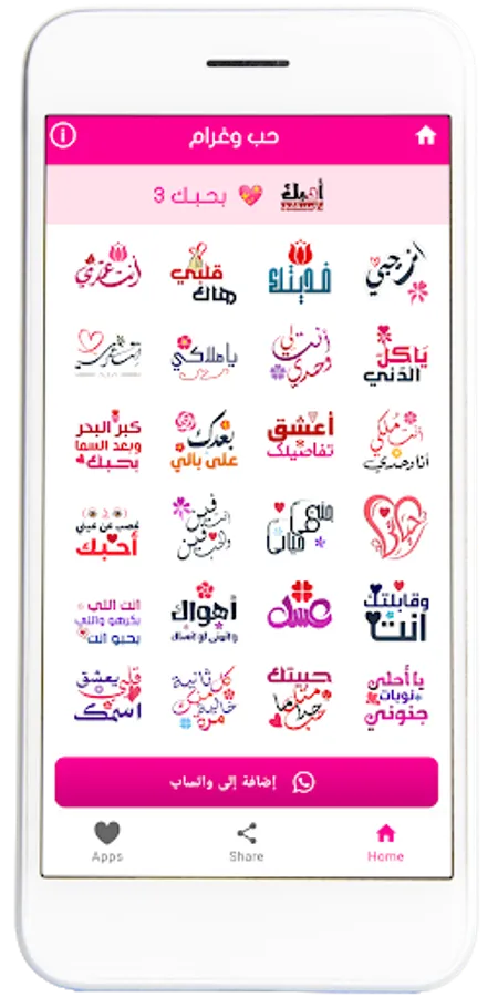 The Love stickers app contains a large collection of beautiful and varied stickers for WhatsApp to express your love for your family, friends and loved ones that were chosen and carefully selected to suit your taste and impress your lover, and they were classified into sections so that it is easy for you to choose what suits you from the stickers and what you see suitable for your lover or the person who You want to send it to him to show him your love and your beautiful feelings.