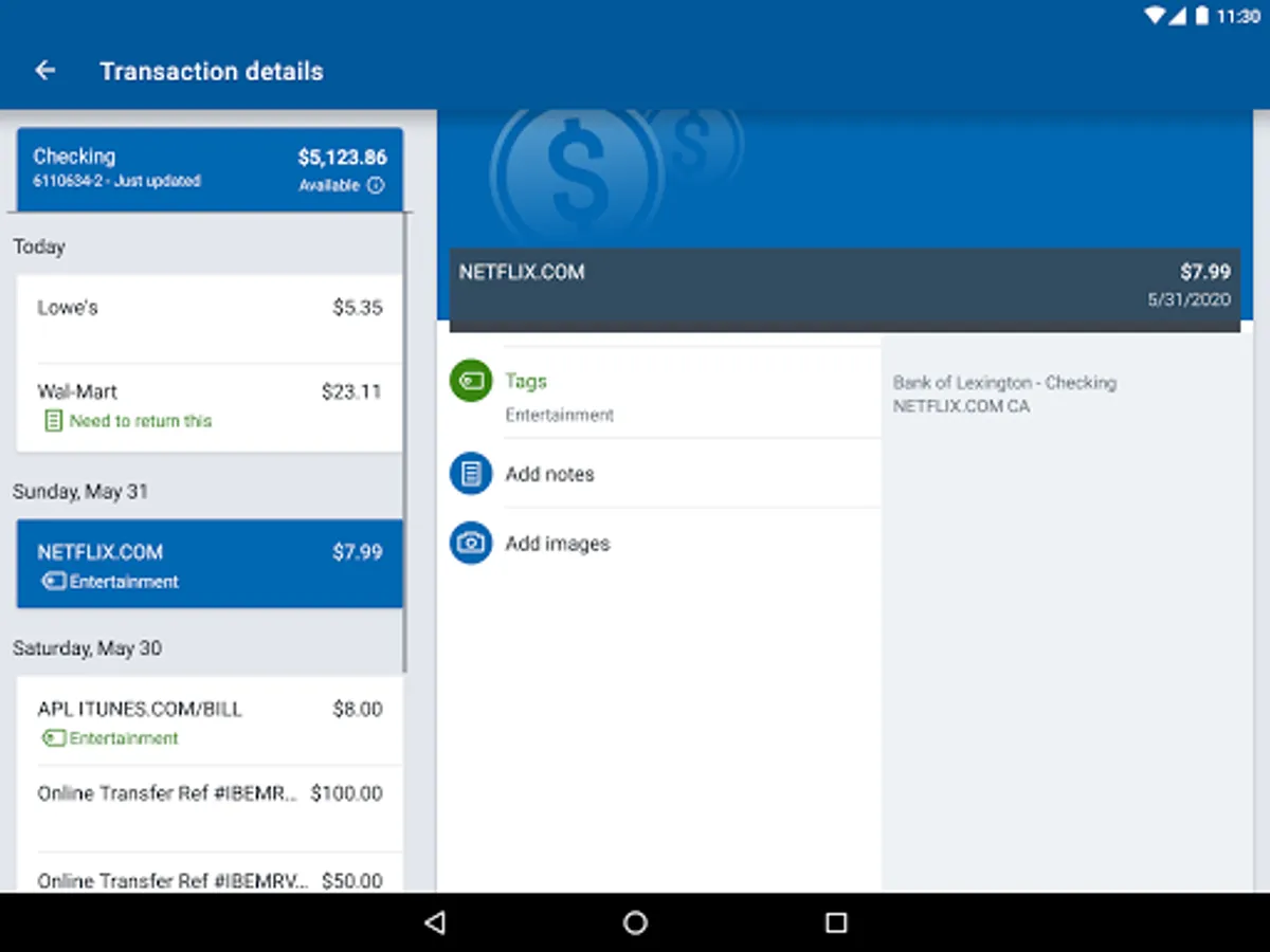 Keep your transactions organized by allowing you to add tags, notes and photos of receipts and checks.
