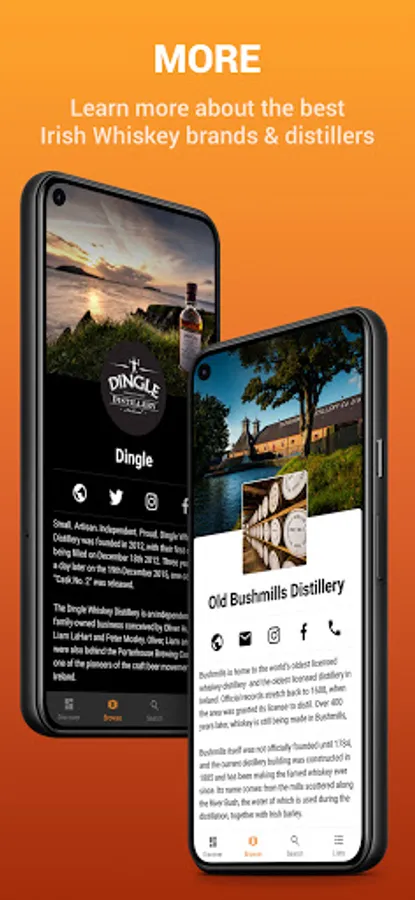 The Irish Whiskey App is the ultimate resource for Irish whiskey. It exists to bring the incredible experiences and stories of Irish whiskey around the globe. Once the most popular spirit in the world, Irish whiskey is experiencing a revival fuelled by innovation and expertise, building on a rich heritage of renowned distilleries and styles.