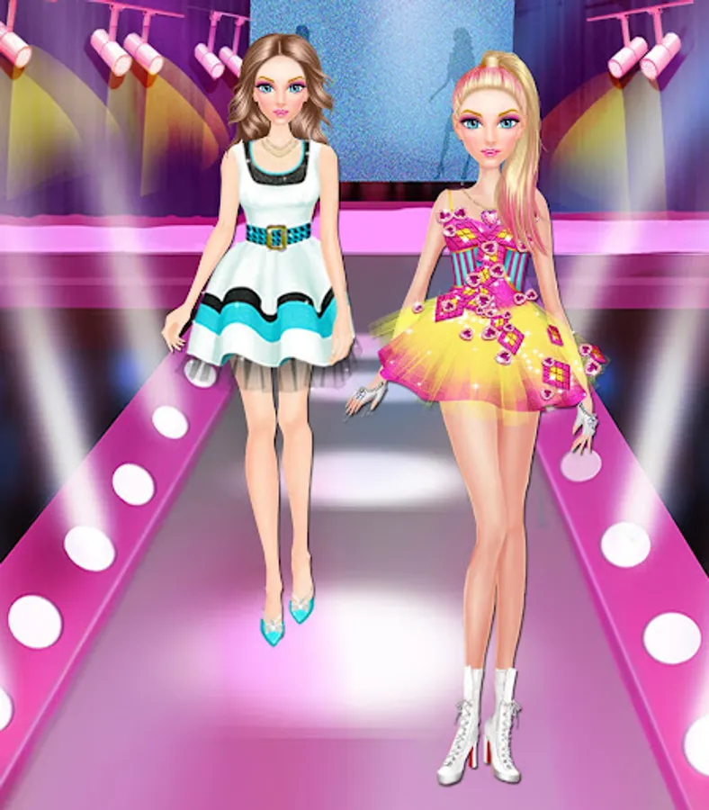 Runway Model Salon features three different stars to dressup however you like. You can also choose from three different stylish runways to show off your new shoes: indoor starlight, indoor regular, and outdoor! These young stars need to look their best! Put on some makeup, pick out some shoes and bags and send them out to become fashion celebrities!