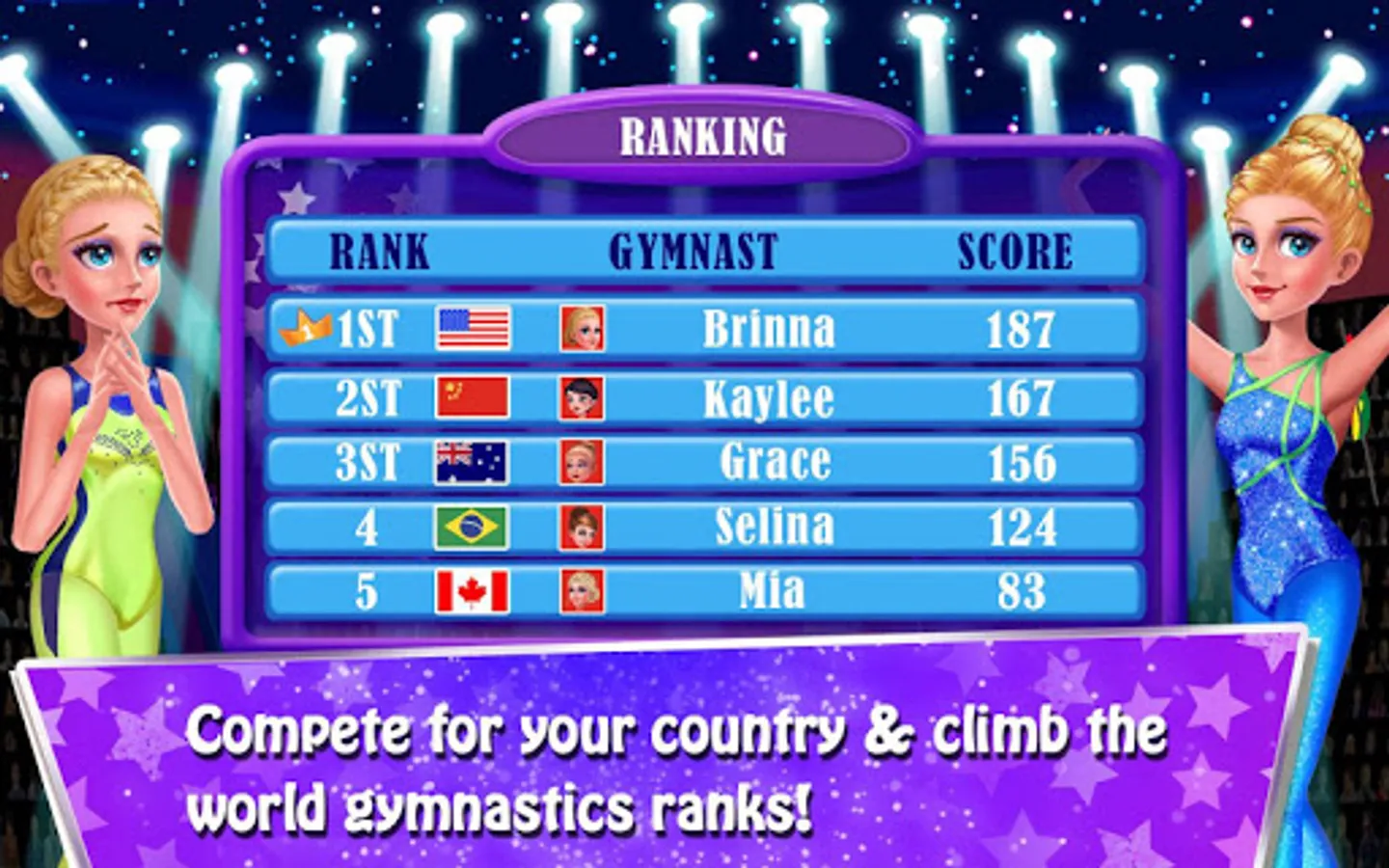 Welcome to Allstar Gymnastics Events! Work on your amazing gymnast moves until they're ready for the Olympics. All your hard work has finally paid off - you've made it to the Olympics! Now's your chance to represent your country with pride! Perfect your uneven bar routine and floor exercises! Win the gold for your country!