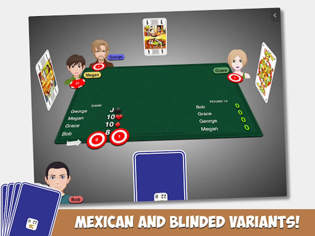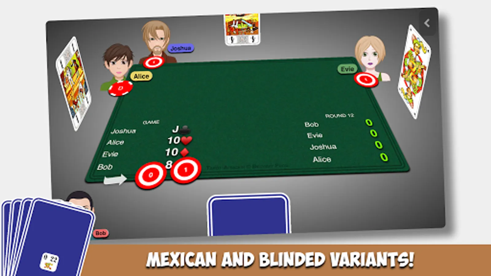 Play Whist 22 with classic rules and with or without Mexican Standoff and Blinded variants