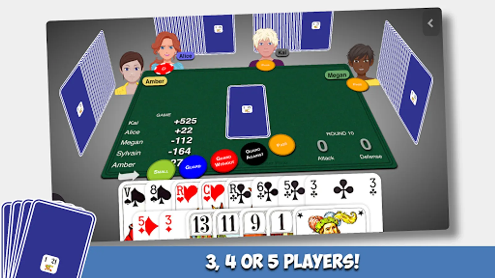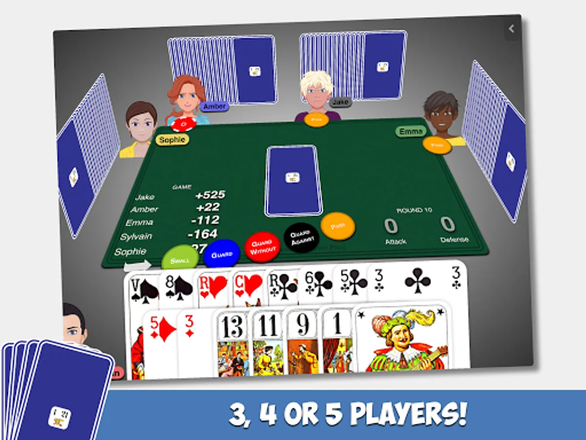 Play French Tarot with 3 or 4 or 5 players