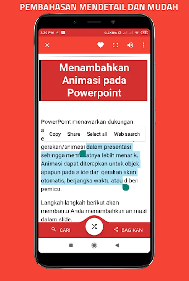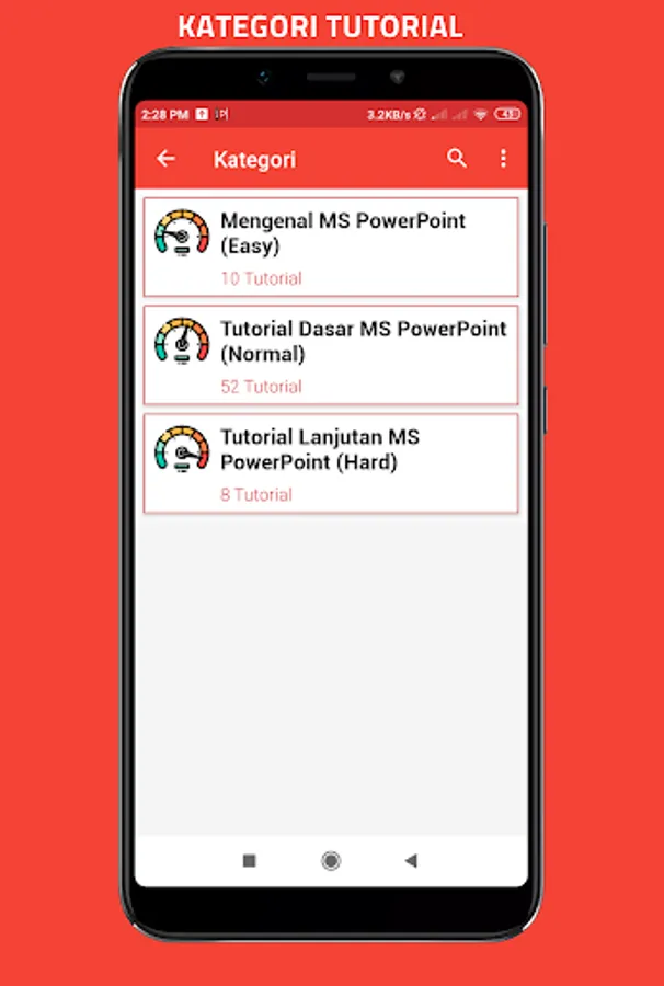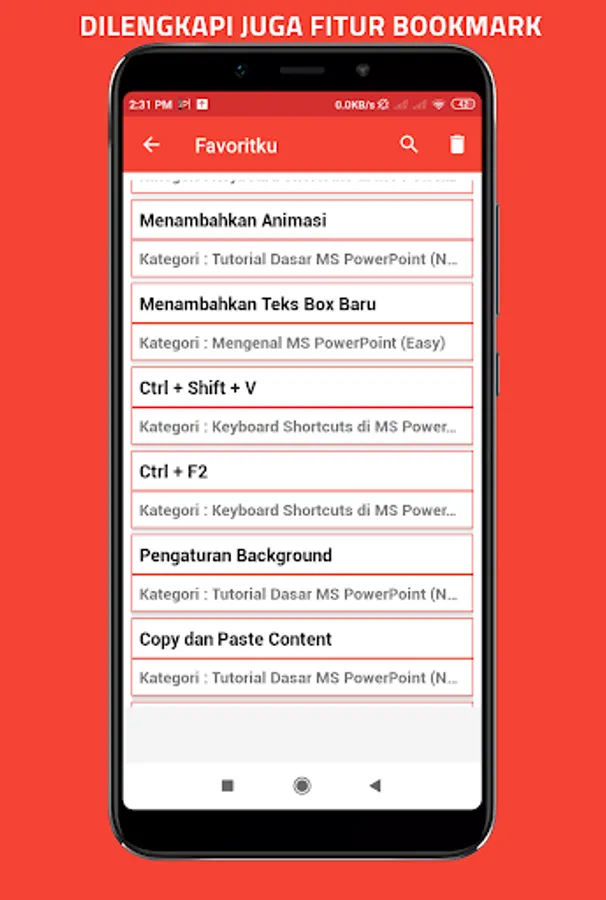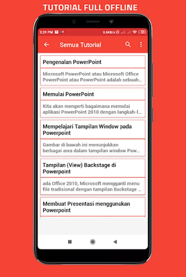 there are plenty of MS PowerPoint tutorials offline without worrying about an internet connection in the BMPini application. from simple tutorials to proficient and professional tutorials. there are categories to make it easier for you to learn, like this: