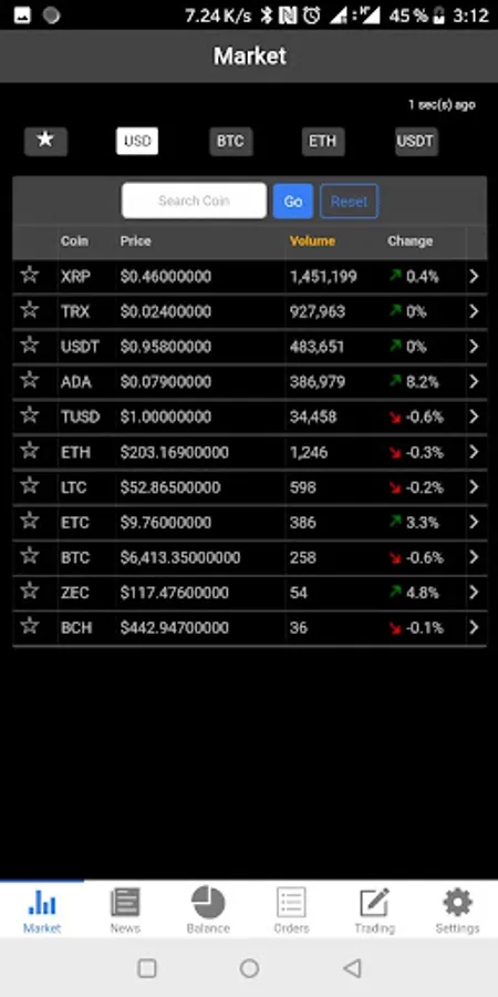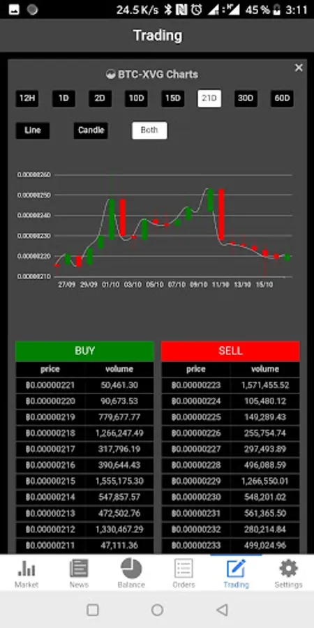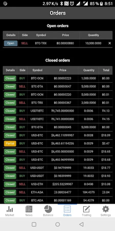 • Access data and advanced charts for each trading pair (incl. ask/bid and charts)