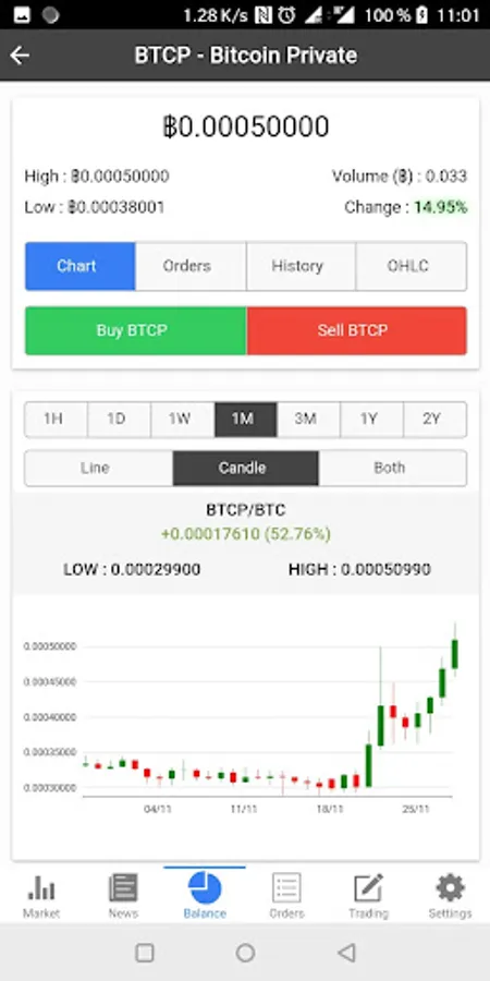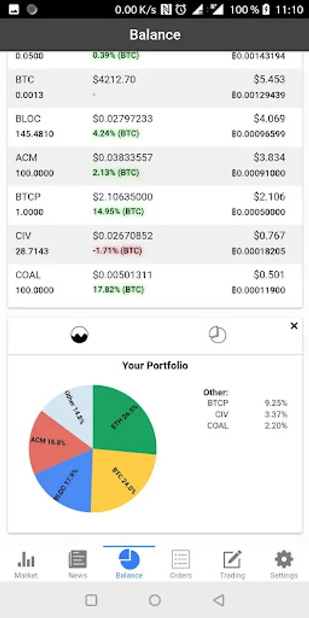 • Access data and advanced charts for each trading pair (incl. orderbook, charts, ...)