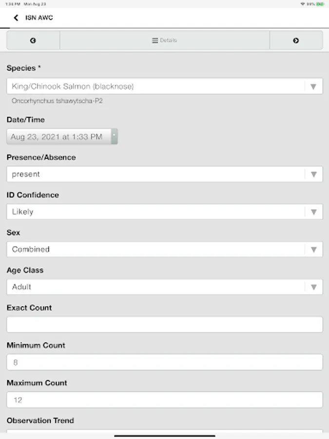 app is designed for community observers to record observations of