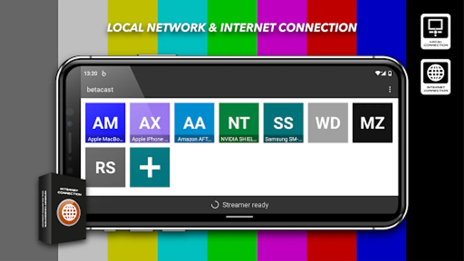 Betacast app allows you to stream and to watch any content from desktop. Stay secure with betacast while watching live streaming, the app supports end-to-end encryption technology. Enjoy 4K Ultra HD video streaming quality. Stream your content from a video camera apps, photo albums apps, stream video from player apps, show presentations, slides, photos or pictures anywhere and anytime!